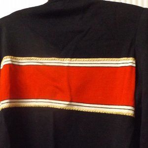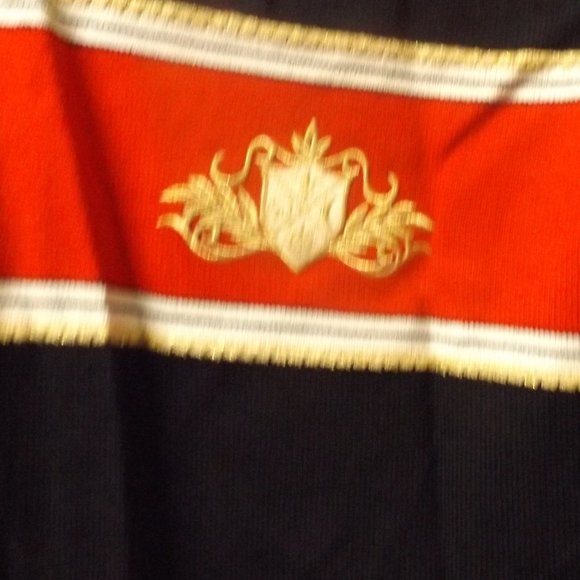 SMALL, PULLOVER NAVY SWEATER WITH RED AND A GOLD CREST ON THE FRONT