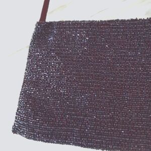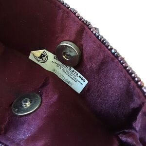 This small purple beaded handbag has a silk strap and silk lining, a US patient No. and is in lovely barely used condition. Measuring 5.5" H x 7" L