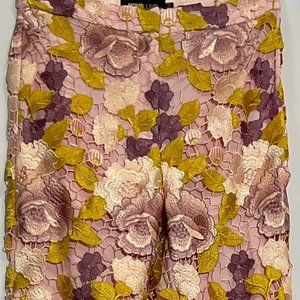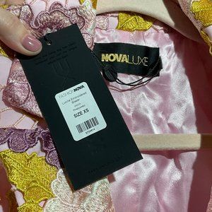 SMALL Pink/Floral FLARED High-rise Pant suit with Embroidered X-small Blazer