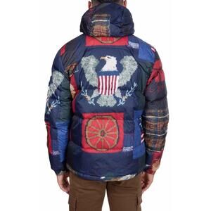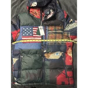 SMALL Ralph Lauren Polo Country Jacket Mens Multi Hooded Puffer Patchwork Flag