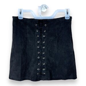 SMALL SEEK THE LABEL BLACK FAUX SUEDE MINI SKIRT STRETCH GOTH FALL CORSET FRONT