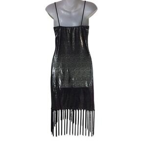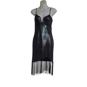 SMALL Sparkling Metallic Fringe Mini Dress Spaghetti Strap VNeck Party Night Out