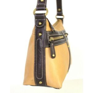 SMALL Tignanello TAN BEIGE BROWN GENUINE LEATHER HOBO HANDBAG PURSE SHOULDER BAG