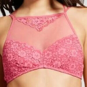 Xhilaration High Neck Lace High Neck Bralette SMALL Rose NWT