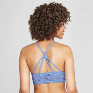 Xhilaration Lace Long Line Longline Strappy Back Bralette Bra SMALL Marine Blue NWT