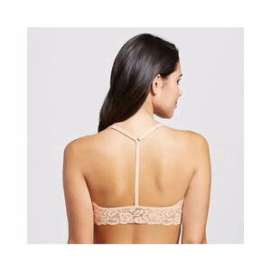 Xhilaration Wire Free High Neck T-Back Lace Bra Bralette Feather Peach NWT