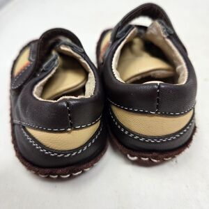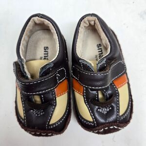 These stylish kids shoes feature a comfortable design with a mix of brown, tan, and cream colors. Perfect for everyday wear, they offer both style and durability. These are a size 6-9 early walker | crib shoes with the curved sole for comfort. Please all photos as this is the exact pair you will receive. Thank you so much for looking. I am always open to reasonable offers. Have a beautiful day.