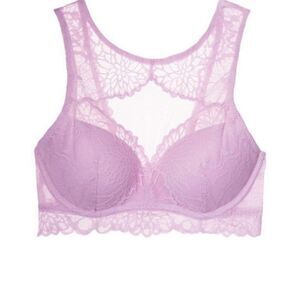 Victoria's Secret Pink Floral Lace High-neck Push-up Bralette Misty Lilac