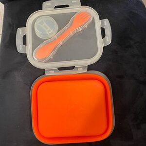 SMART Planet eco collapsible meal kit lunchbox & utensil, orange w/cover & sauce