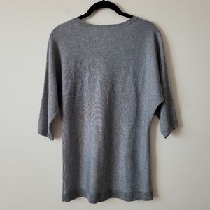 SMART Set Silver Grey Metallic Knit V Neck Top Size S