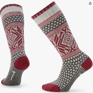 SMARTWOOL Unisex Everyday Cozy Popcorn Polka Dot Crew Socks Red Ash Gray Small