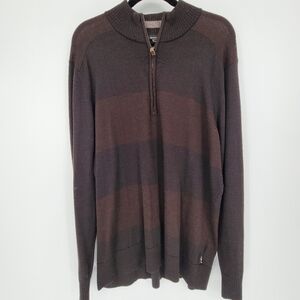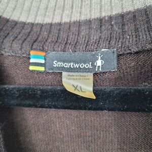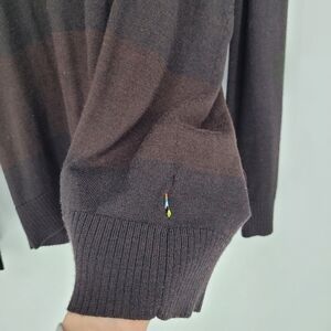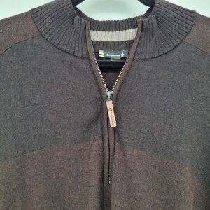 SMARTWOOL men merino wool brown stripe Ridge quarter zip sweater size XLARGE