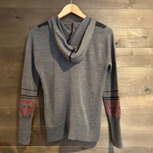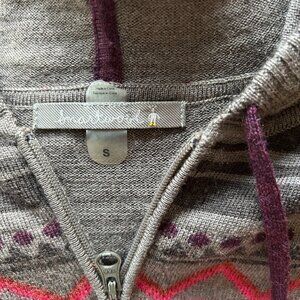 Rare, limited edition sweater from a collaboration between Smartwool and artist, Charley Harper! Style is the Glacier Bay Zip Hooded Sweater in Taupe. Size Small. Description: Since the 1940s, iconic artist Charley Harper has lovingly integrated natural themes into intriguing graphic design. Comfy and welcoming, colorful and geometric, our Charley Harper Glacier Bay Hooded Sweater showcases Charley’s art. And your good taste. Features: Intarsia knit, Charley Harper artwork, Raglan sleeve, Semi-Form Fit; 60% Merino Wool, 20% Nylon, 20% Acrylic. Made in the USA. Laid flat/unstretched, bust measures approx.17" across from underarm to underarm; length is approx.23" from back of neck to hem. Worn once, in EUC!