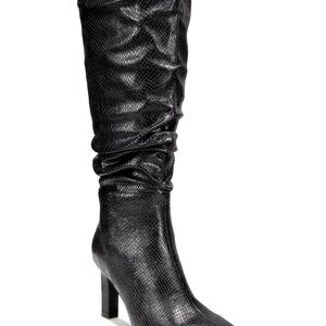 SMASH Shoes Women's Fallon Knee High Slouch Black Snake Dress Boots - Wide Calf