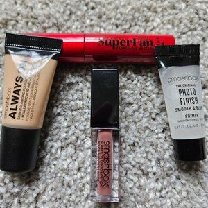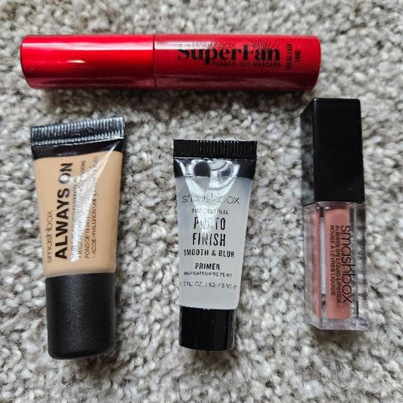 SMASHBOX ASSORT - SUPERFAN MASCARA/FOUNDATION/PHOTO FINISH/LIQUID LIPSTICK w/BAG