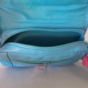 SMIGGLE Owl Purse/Handbag/Makeup Bag/Pencil Case Glitter Zippers Pom Poms Blue
