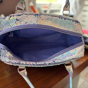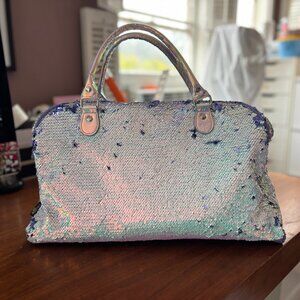 VERY GENTLY USED. Purple and Silver bag with detachable handle. Sequins can be reversed to create a cool effect.