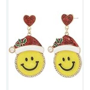 SMILEY FACE Happy Face Earrings Christmas HOLIDAY Pierced SANTA HAT Chic Gifting