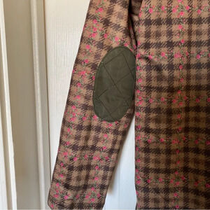 SMITH AND QUINN Rose Plaid Floral Check Mock Neck Dress Elbow Patch Size XS