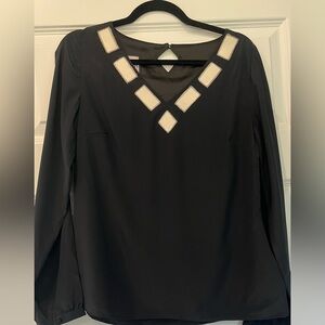 SMITH Black Elegant Long Sleeve Blouse Top With White Geometric Appliqué Size S