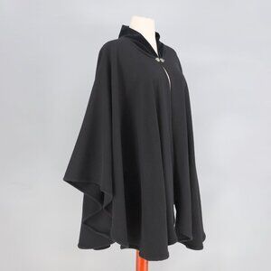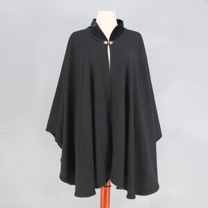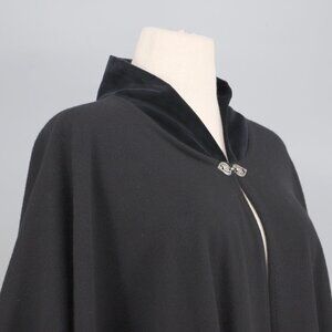 SMITHSONIAN INSTITUTION Wool Blend Cape Coat Velvet Collar Black Italian OS