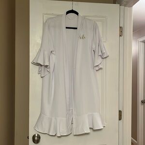White bridal robe with “bride” written in gold. Perfect for getting ready day of the wedding. Sizing is labeled as S/M/L with tie waist. ✨MAKE ME AN OFFER!✨