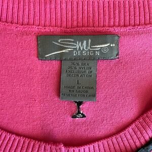 SML Design Cardigan Size Large Pink Martini Emblem Silk Blend Crop Black Ribbon