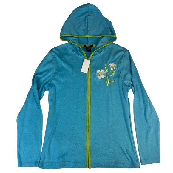 SML Sport Hooded Jacket with Stripe Shell Women's S Blue Embroidered Zip Up