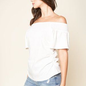 SMOCKED OFF THE SHOULDER TOP