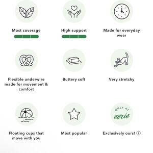 • Made for maximum comfort and flexibility, this bra features a flexible underwire that moves with you, floating cups that adjust to your shape, and Aerie’s patented smoothing wing for a sleek, smooth fit under clothing.