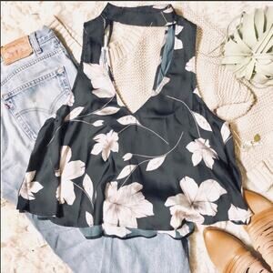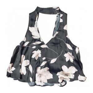 SMYM MuMu Mock Neck Casey Collar Top Black White Floral Swing Tank Blouse L