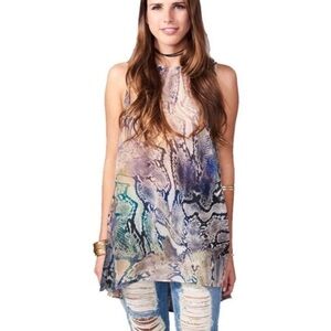 Sheer Python Print Tank. Large open keyhole sexy back with single button closure. Size small. Preowned