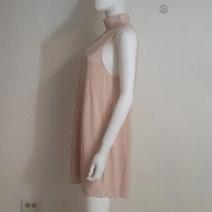 Scoop neck with attached choker collar - Sleeveless - Cutout V-cut back with button closure