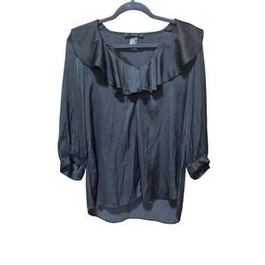 SMYTHE Over the Head Ruffle Collar Blouse Black Size M | Elegant Workwear Top