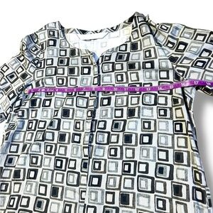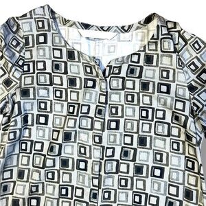 S'Max Mara linen shift dress Tunic Geometric Print Size Small 3/4 sleeve