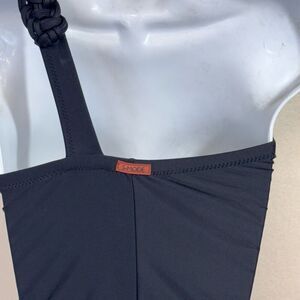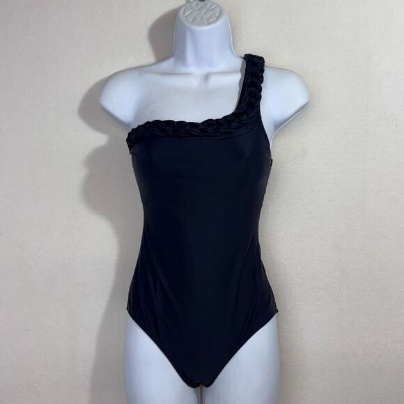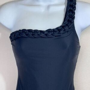 S-Mode Womens Braided Trim One Shoulder One Piece Swimsuit Black Small