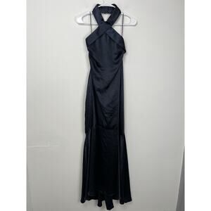 SNAGS -ELLIATT Size Small Angie Flared Satin Halter Gown In Navy Blue Maxi Dress