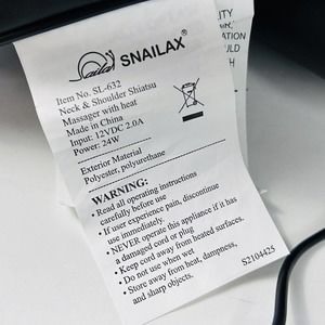 SNAILAX Shiatsu Neck & Shoulder Massager w/ Heat Deep Kneading Model SL-632