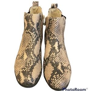 SNAKE Print Boots Size 8 Chelsea Bootie Size Zip Tan Black