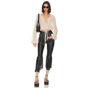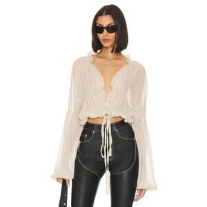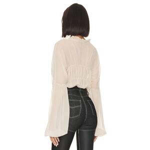 Featuring a round neckline, long sleeves, a gathered sheer texture, a relaxed fit and a drawstring hem. Round neckline. Long sleeves. Front button closure. Gathered sheer fabric with drawstring hem. Material: 100% Polyester. Fits true to size