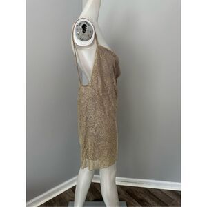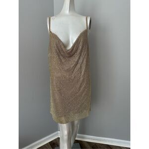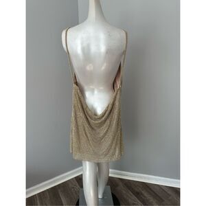 NWT SNDYS Crystal Glass Cowl Neck Backless Sunset Mini Dress Gold Size 8/Large $108
