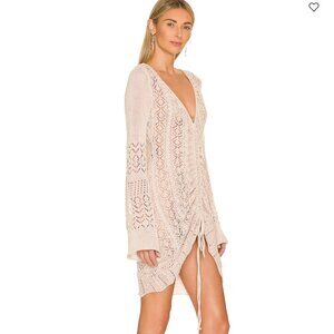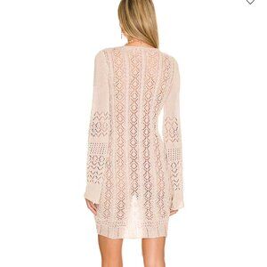 SNDYS Fate Mini Dress in Beige Knit Sheer Long Sleeve Swim Coverup Beach Robe