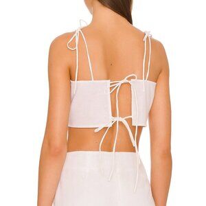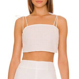 SNDYS Linen Tank Top crop tie strap open back womens White (size 4) minimalist