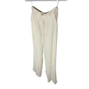 SNDYS Roma Pants Trouser Satin Wide Leg High Rise Minimalist Classy Ivory Sz XS