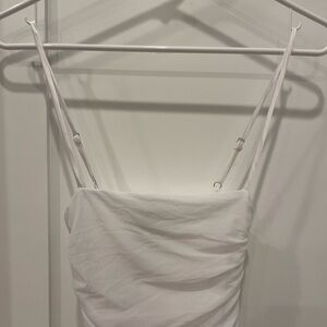 SNDYS Simone Ruched Mesh Dress in White.Size XS