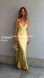 SNDYS Spain Maxi Dress in Gold backless flowy draped satin silk formal gown