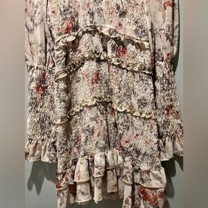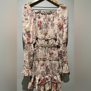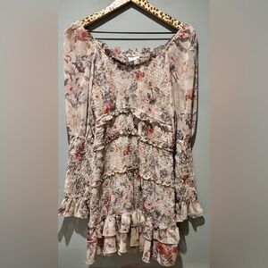 SNDYS | Violet Tiered Ruched Puff Sleeve Shirred Sheer Floral Dress