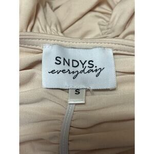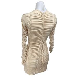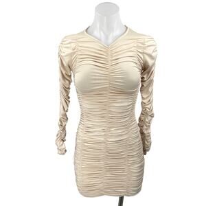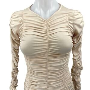 SNDYS Women's Beige Tan Ruched Stretch Long Sleeve Mini Bodycon Dress Size S