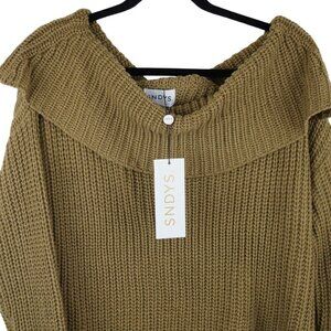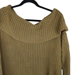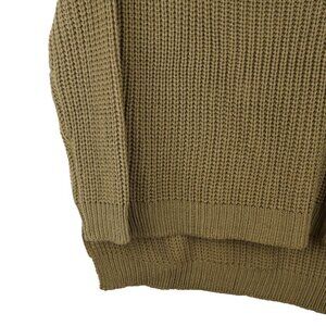 SNDYS X Revolve Womens Medium Olive Green Acrylic Knit Sweater With Fold-Over Co