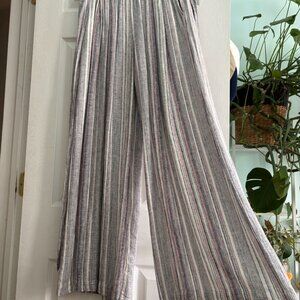 SNEAK PEEK WIDE LEG BELTED CASUAL LINEN STRIPED PANTS TROUSERS (WOMEN'S SMALL)
